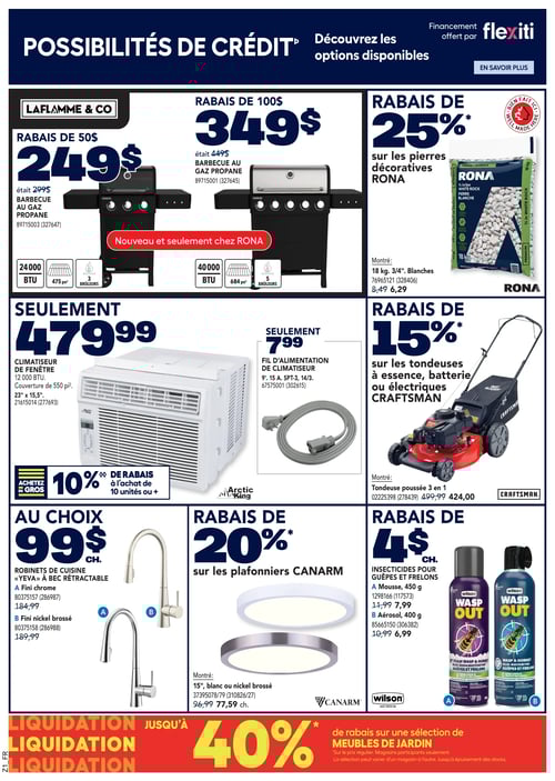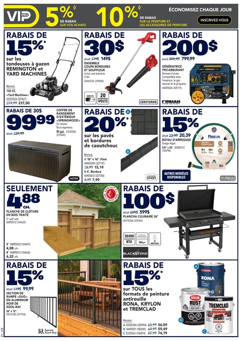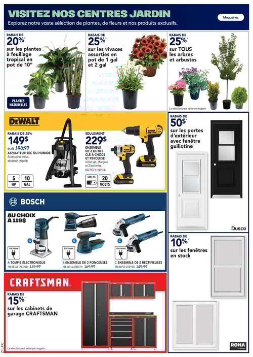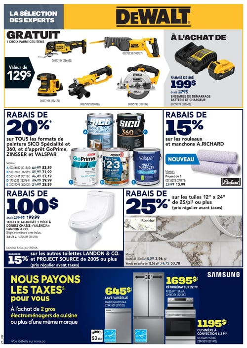 Consulter la plus récente circulaire en image de RONA, pour y découvrir tous leurs spéciaux de la semaine. De plus, vous avez également accès aux promotions de la semaine sur tous les équipements et matériaux de construction.